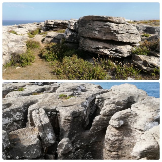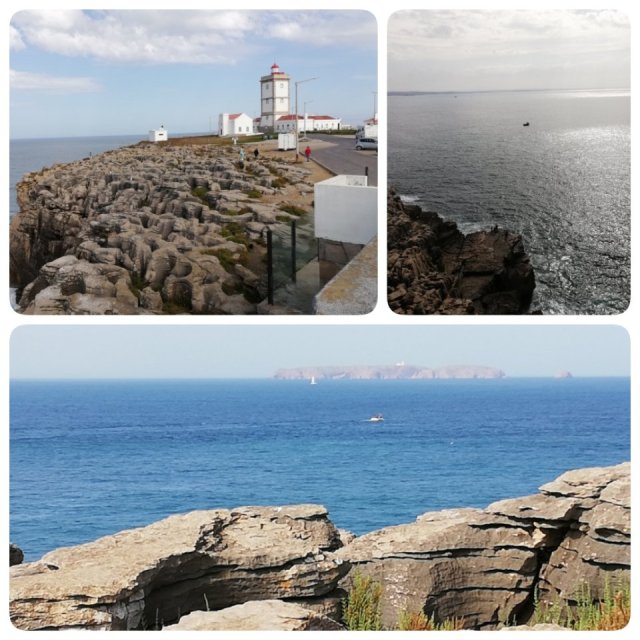 Sedan fortsatte vi västerut, genom gränder och smala gator. Så småningom kom vi till Cabo Carvoeiro och fyrhuset. Här satt vi och tittade. Länge. På vågorna. Klipporna. Vassa. Och mjuka.