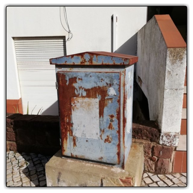 Det finns elskåp som inte är målade. Men detta rostiga skåp, är nästan vackert ändå. Man kan nästan se olika figurer i rosten.