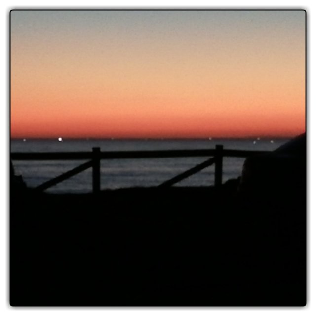 Strax därefter fylldes bukten med fiskare, på jakt efter sardiner. Du kan se lite båtbelysning mot horisonten. Små vita prickar