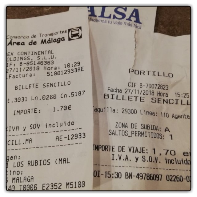 När vi skulle åka tillbaka till Torre del Benagalbón så blev det lite struligt. Vi hade en busstidtabell med bussarna 260 och 163. Buss 260 kom och vi köpte biljett i en av biljettkurerna vid bussterminalen. Men vi fick inte åka med för vår biljett var med ett annat bussbolag. Så vi fick snällt vänta en dryg timme. Och vi fick lära oss att buss 260 är bussbolag ALSA och buss 163 är Portillo. Så det gäller att köpa i rätt biljettkur.