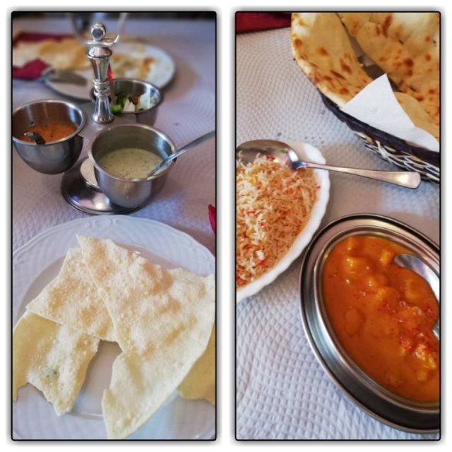 Väl tillbaka i Torres var vi hungriga. Vi stannade därför på Taj-Mahal. En indisk /pakistansk restaurang. Där mumsade vi i oss Pappadom med salsa samt räkor i kormasås med ris och naanbröd. Jag har inte varit så förtjust i indisk mat tidigare men detta ställe håller på att bli ett stamställe! Verkligen jättegott!