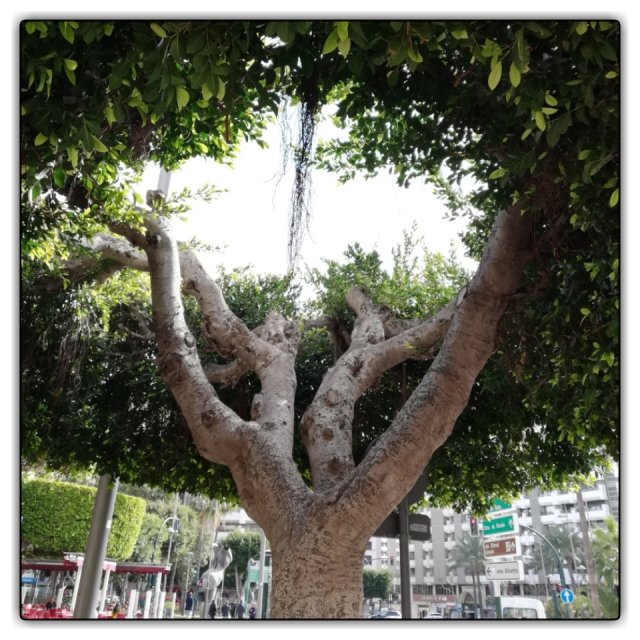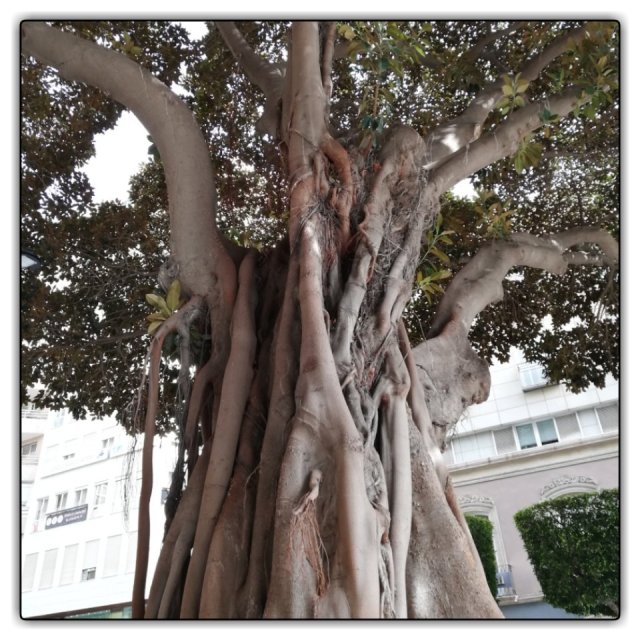Ett gigantiskt stort träd, Ficus Macrophylla. I diameter är stammen 1.5 m som smalast och 5.10 m som tjockast. Det är 18 m högt och kronan är 20 m i diameter! Wow säger jag bara!
