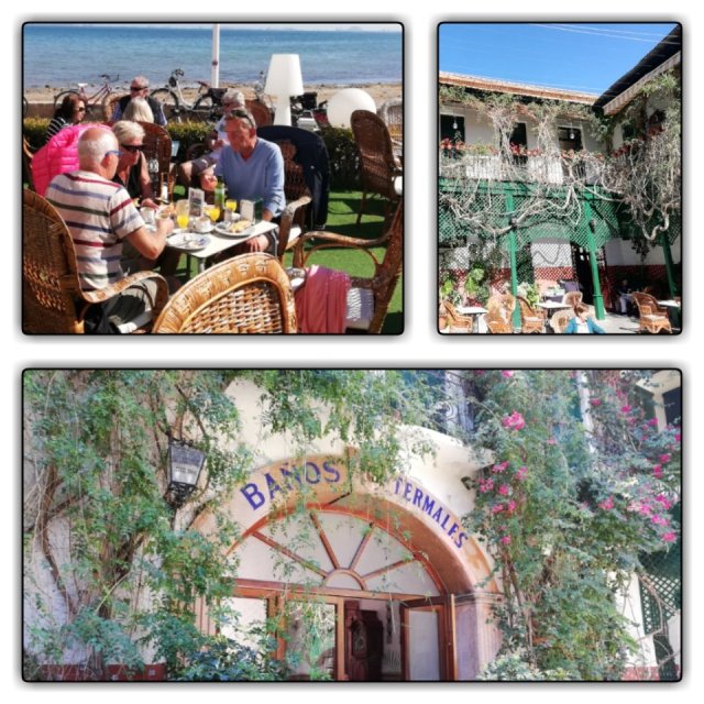Vi umgås med nya och gamla vänner. Hittar lite nya ställen att smaka nåt gott på. Här har vi cyklat iväg till ”engelska hotellet” och har en paus med kaffe, rostat bröd och juice. Det kostade oss totalt 3.70€ men vi får väl kosta på oss lite ibland 😉