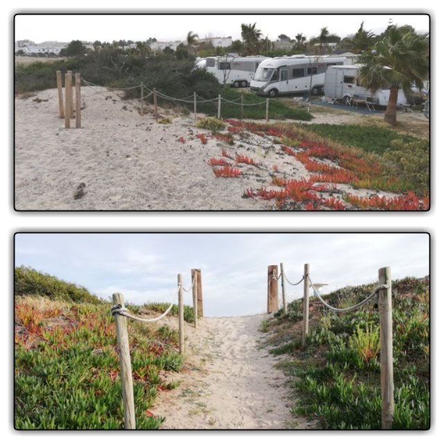 När detta nu hände fick vi styra om våra planer lite. Vi kan ju inte stanna vart som helst om det blir kallt på natten. Då vill vi ju ha lite värme. Vi står nu på ACSI camping Miramar Här får vi el och det känns bra. Vi har ett litet el element så vi behöver inte frysa. En ok camping med bra servicehus. Lite sandiga platser. Vi står precis vid havet så vi hör vågorna.
