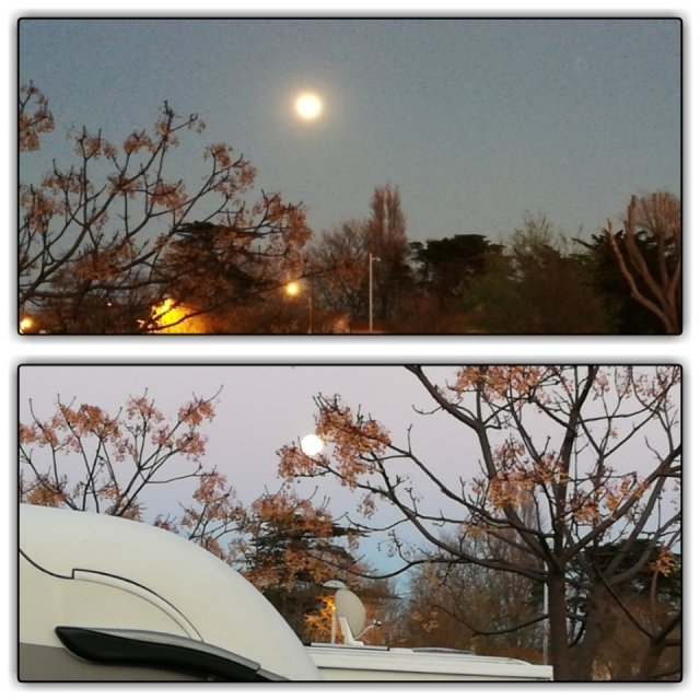 I morse när vi lämnade Marseillan Plage hade vi bara +8 grader. Skönt att våran värme fungerar igen! Det blir väl bara kallare och kallare ju längre norrut vi kommer…. Förresten så fick vi se en häftig fullmåne igår kväll