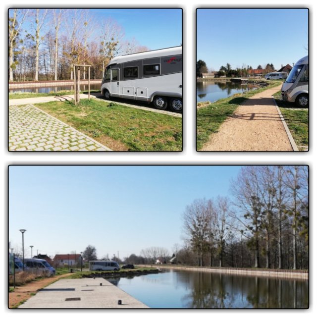 Sedan upp igen. Målet för dagen var ställplatsen i Digoin, där vi stannat många gånger tidigare. Men nu ändrade vi oss och stannade en knapp mil tidigare. I Molinet. N46.470654, E3.941291. Här finns 12 platser på plattor, med gräs emellan. Ingen el. En tömning /fyllningstation där man betalar 2 € för 20 minuter. Vi har inte provat den, så jag vet inte hur det fungerar. Bilar längre än 8 meter måste backa in sitt överhäng för att få plats. Men det är så vackert precis bredvid kanalen. En väg går strax bortanför och kanske kan trafiken störa. Annars är det bara tuppen som gal.