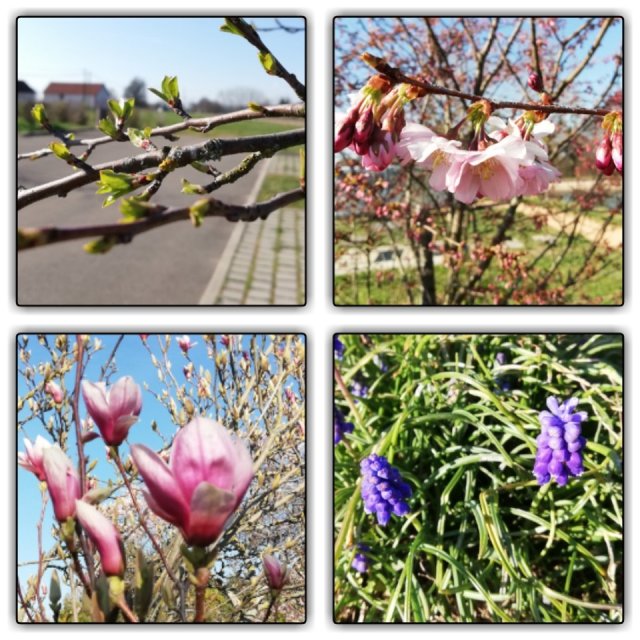 Vi har verkligen våren med oss. Vi har sett tussilago, körsbärsträden står i blom, påskliljor, magnolia, forsythia och träden har musöron.