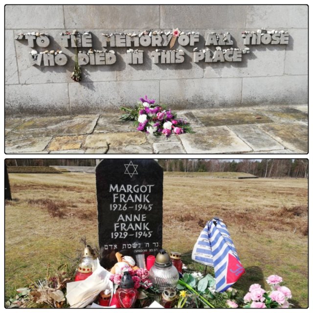 Det var minst 52 000 personer som dödades i Bergen Belsen. Så många som 2500, är begravda tillsammans i stora massgravar. Det finns många sådana massgravar. Några personer är identifierade. Bland andra Anne Frank och hennes syster Margot. De har fått egna gravar. Anne Frank är känd för den dagbok hon skrev. Där berättar hon bland annat om när de blev förrådda efter 4 år i sitt gömställe. Har du inte läst boken rekommenderar jag dej verkligen att göra det. Men ha en förpackning pappersnäsdukar till hands. De behövs även under ett besök på Bergen Belsen