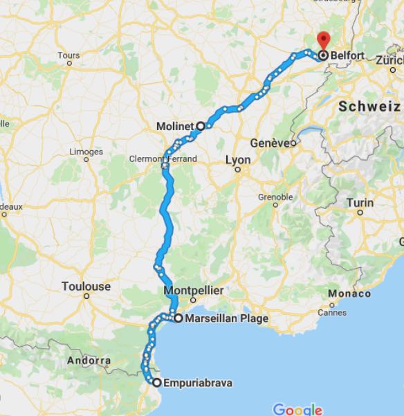 Tycker fortfarande det är synd att ni missar hela Provence och kör från Marseillan till Belfort. Lite längre österut – mellan Marseille och Toulon ligger ett helt fantastiskt område, både vid kusten och uppåt. Hade vi varit kvar hade vi övertalat er att komma förbi! Tips är också att köra genom Tyskland en söndag, lastbilar får inte köra då så det går utmärkt snabbt och lätt på Autobahn då!