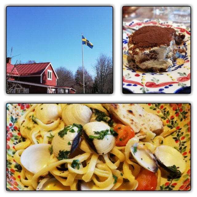 Eftersom jag fyllde år i lördags åkte vi in till Borlänge och åt middag på Basta! En italiensk restaurang där jag valde pasta med snäckor och en tiramusu till dessert. Tack – så gott det var! Söndagen ägnade vi åt att planera lite, röja lite trädgård och prata. Eftermiddagen var vi sedan i Skräddarbacken och hälsade på familjen där. Oj vad Penny har blivit stor. Och hennes bröder ännu längre. Tack för fikat!