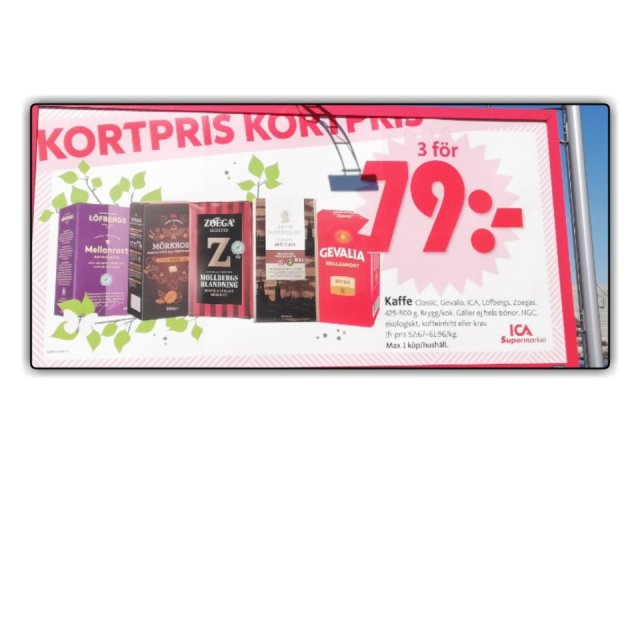 Idag, måndag har vi knallat runt på handelsområde Norra Backa och gjort en del inköp. Vi handlade däremot inte på Ica eftersom vi tycker reklamen är ganska vilseledande. 5 kaffepaket på bilden och priset. Men så står det att man får köpa 3. Vi köpte inget!