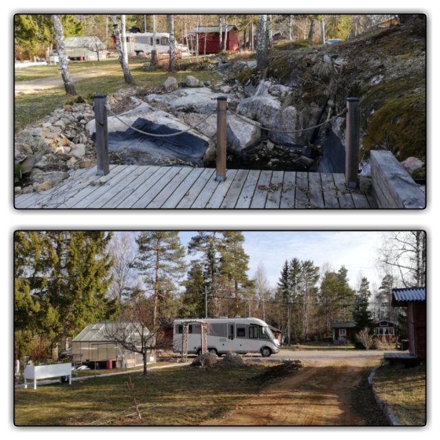 De har en bra plats för husbilen precis vid infarten.