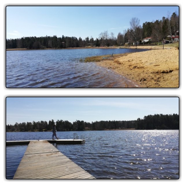 Men vilken sommarvärme det blev! Vi hade +20.2 i skuggan här igår så vi passade på att räfsa och dona i trädgården. Elin och Hampus bor fint till, I skogen. Men ändå inte ensamt. Och nära en sjö med badplats.