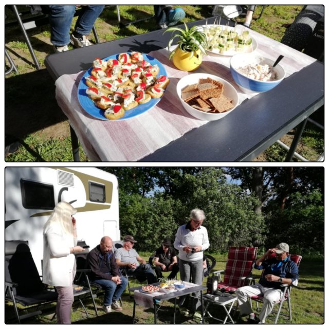 När alla de andra kom tillbaka till campingen var det dags för nästa utmaning. En kanottävling. Men där lämnade vårt lag walk-over eftersom jag inte tar mej ner (eller upp) i en kanot just nu.Sedan hade vi lite fritid. Så skönt. Vi satte oss tillsammans. Britt-Marie och Lars hade fixat lite snittar och jag körde ett musikquiz. Det var riktigt roligt och trevligt.