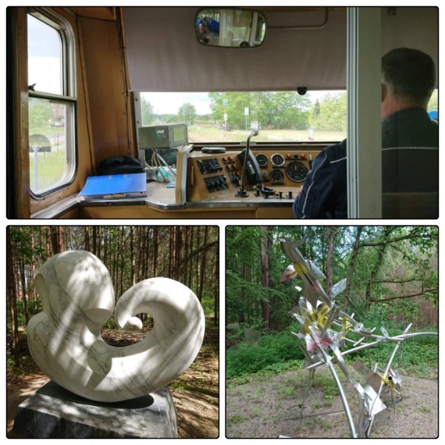 Igår, onsdag, var vi kvar på Camping – Ferienpark Havelberge. Skönt att ligga still lite. Men strax utanför campingen fanns en gammal tågbana som vi skulle fara med. Jag stannade hemma i husbilen eftersom min rygg/nacke inte ville vara med, men det övriga tog tåget till Wesenberg och gjorde ett besök i Skulpturparken.