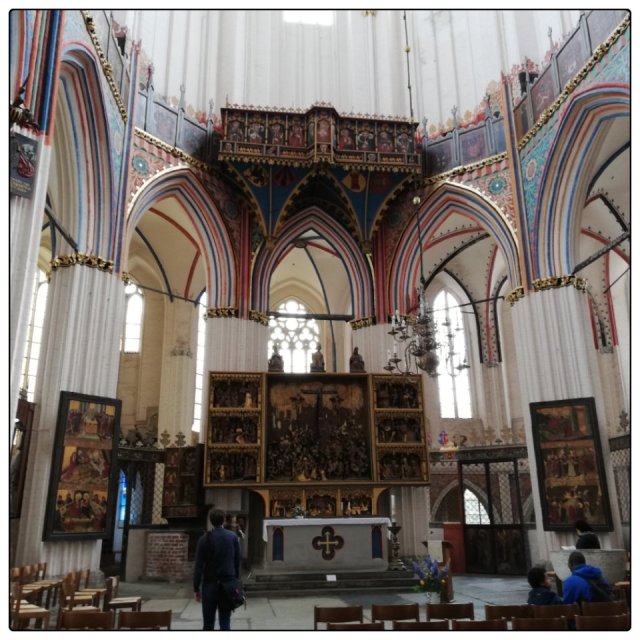 Kyrkan St Nikolai var otroligt vacker. Ljus och färgglad.