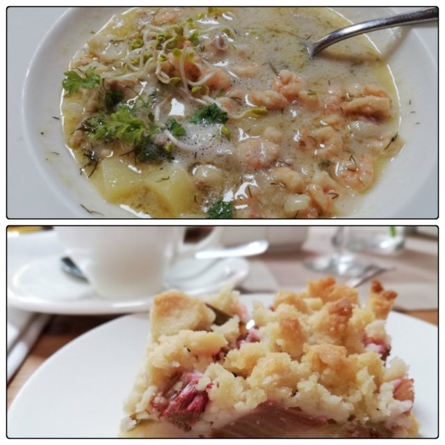 Lunch på restaurand Zum Sheel sin bjöd på otroligt god fisksoppa och rabarberpaj och kaffe till dessert