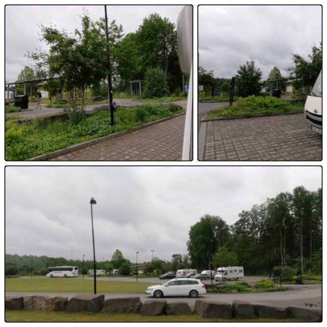 Vi hade tänk att fara till en ställplats, på vår väg hemåt, upp genom Småland. Men vi stannade i Älmhult på Ikea och åt lunch. Sen så såg vi en annan plats där vi stannade. Det blev trafikverkets rastplats i Moasjön, strax väster om Alvesta N56.904767, E14.440022 Här finns toaletter och möjlighet till att tömma toan. Många långtradare och campingekipage gjorde oss sällskap under natten. Men vi sov skönt när åskan dragit bort.