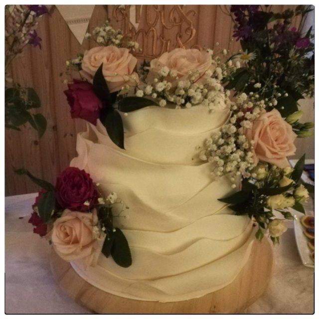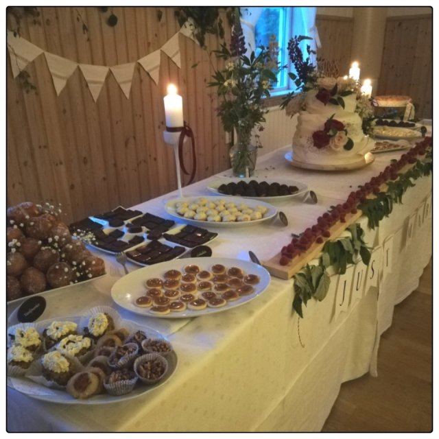 Andreas syster Therese, som är florist, hade gjort brudbuketten. Storasyster Veronica är fantastiskt duktig på att baka och hon hade gjort tårtan. Hon hade även glory ett stort dessertbord brudparet fick i bröllopspresent.