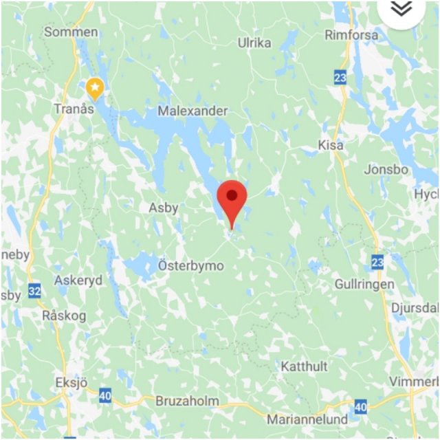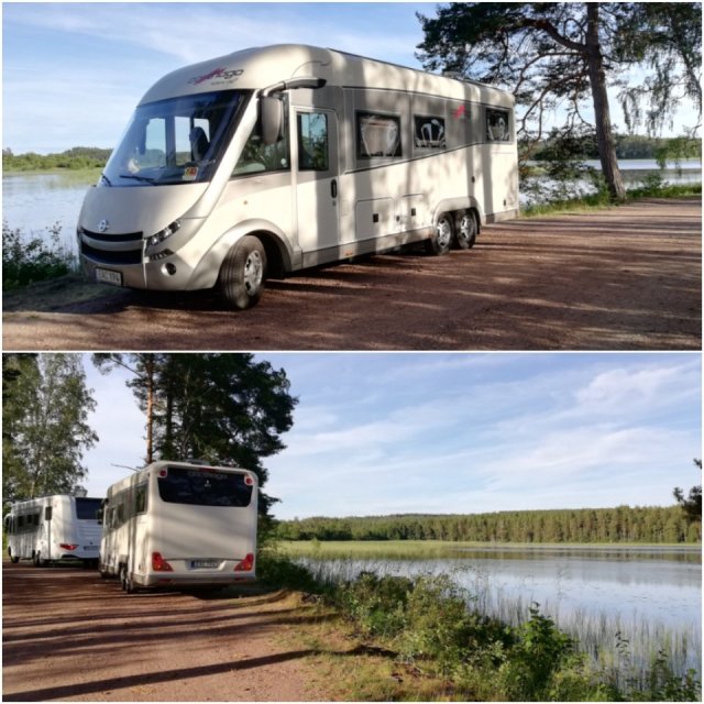 När man som vi åker kors och tvärs hittar vi ibland små trevliga pärlor. Vi har en del appar som visar ställplatser och rastplatser, men långt ifrån alla ställen att stå på, är ju med.Vi lämnade en stor pärla där vi firat midsommar. Stannade till hemma en snabbis, för att fylla på i frysen med lite mera mat. Vi ska uppåt Gnesta men ville inte köra E4. Vi valde därför att ta sikte på Österbymo och vidare till Kisa. Plötsligt dyker det upp en rastplats. Vi svänger in, för den ligger precis bredvid en sjö.