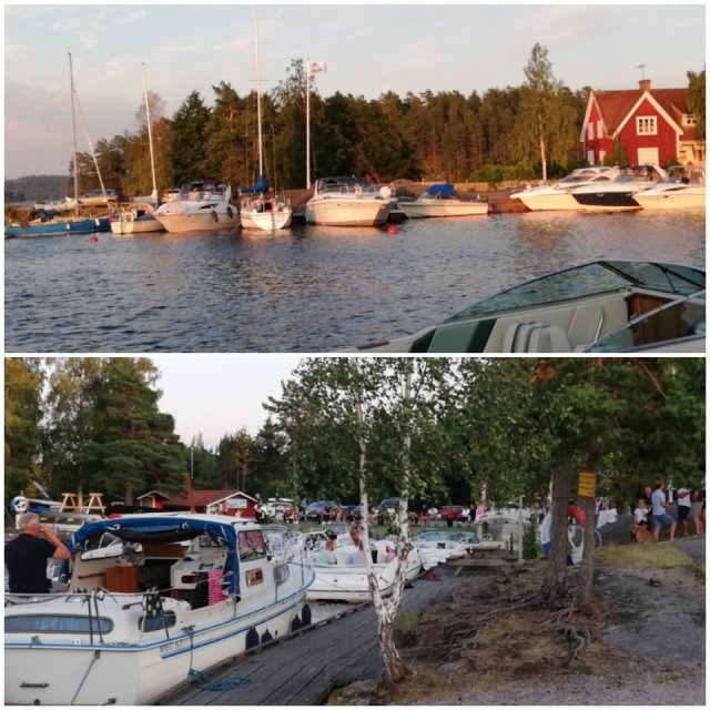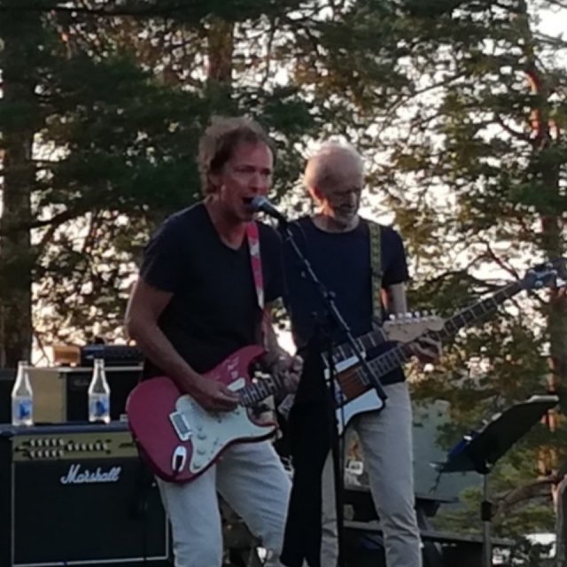 Sedan blev det en liten promenad bort till restaurangen, vid färjeläget. Idag var det underhållning där. Mycket folk och bra musik, ett Rockblues band
