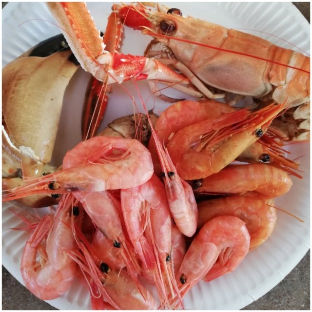 På kvällen var vi in i fiskbutiken och köpte och lite ”snabbmat” bestående av havskräfta, krabbklo och både vanliga och rökta räkor. Otroligt gott tycker vi som älskar skaldjur.