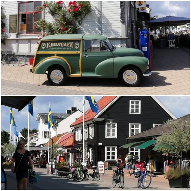 Söndagen var vi kvar och njöt av sol och alldeles lagom mycket vind. Idag, måndag for vi först ner till Borgholm Vi hade funderat på att stå på ställplatsen nere vid hamnen. Men när de tar 225 kr för en natt utan el så vände vi och ställde oss på en gata. Vi gick en vända på stan, men det var lite ”avslaget” trots bra väder. Rea på alla klädbutiker, där de flesta har ett utbud som man kan se på marknader.