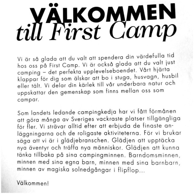 Mina ägare nyttjade två av dessa biljetter på First camping i Malmö, Limhamn. Denna camping kan rekommenderas, väldigt bra service, fin plats fick jag, ägarna tyckte serviceutrymmena var fina och bekvämt cykelavstånd till många olika aktiviteter.