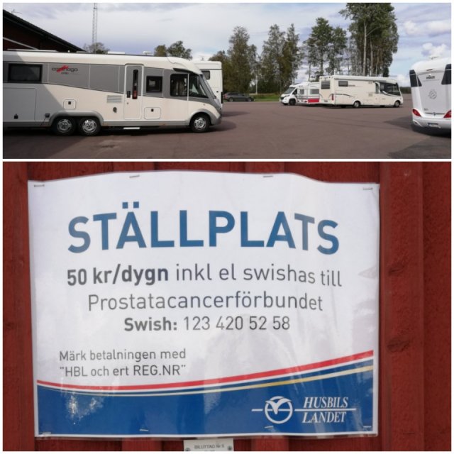Sedan blev nästa nattstopp strax söder om Kristinehamn. Vid Husbilslandet. Vi ska inte byta husbil men vi står gärna på deras ställplats. De har en överenskommelse med prostatacancerförbundet om att pengarna skänks dit. Fantastiskt bra initiativ! Och självklart använde vi el då 😀