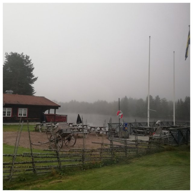 Nattstoppet blev vid Fänforsen. Här står vi gratis vid älven och även här är det lugnt och skönt. I morse var det dimmigt över Västerdalälven. Kyligt men samtidigt lite vackert. I dag blir det ett besök i vår gamla hemstad Borlänge, träff med kompisar och sedan stannar vi hos dottra och måg.