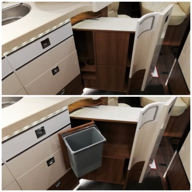 Så var det det här med att skrapa under ytan på Carthago. Det gör lite ont i hjärtat, men det finns brister, jag har hittat. Och då ganska tokiga saker som jag hoppas kommer att rättas till. Det jag som, som jag tycket är jätteknasigt, är placeringen av soppåsen. Jag får först dra ut ett skåp. Det måste dras ut så långt att det blockerar passagen förbi. Nu var detta otroligt trögt, men kan förhoppningsvis justeras, så jag slipper ta i med båda händerna för att få ut det. Sedan ska ytterligare en skåplucka öppnas innan jag kan slänga nåt i sop-påsen. Jag vet ju hur smidigt det är i dag, så detta passar inte mej alls.