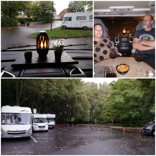 Det började inte speciellt bra, i går morse. Vi låg ju på en ställplats utanför en restaurang i Tiel, i Holland. Vi hade haft lite mejlkontakt med bloggvännerna MicAnn som var på väg norrut. Vi bestämde därför att ses på en ställplats i Avion (mer om det strax) Nåväl, när vi ätit frukost och skulle rulla iväg, var det stängt. Ett elektroniskt staket var ivägen. Regnet öste ner. Jag sprang till restaurangens ingång och noterade att de öppnar kl 16 🙄 Knackade på hos grannen med holländsk husbil, men de visste lika lite som oss. Okej. Vi satte oss tillrätta och började kika efter andra platser. För kommer vi inte ut förrän vid 15-tiden får vi ändra våra planer. Men! Efter en dryg halvtimme så kommer det en personbil och ska in på parkeringen. Grinden öppnas. Jag startar, ropar till Göran; ligg still! (han låg och läste) och så gasade jag ut i full karriär. 🤣 Ute på trottoaren stannade jag, satte på mej säkerhetsbältet, Göran kom och satte sig, vi knappade in GPSen och vi var på väg. Oj så skönt!