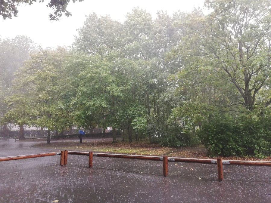 Vi har fikapaus på väg mot Waren och rätt som det regnar kommer det en skur…