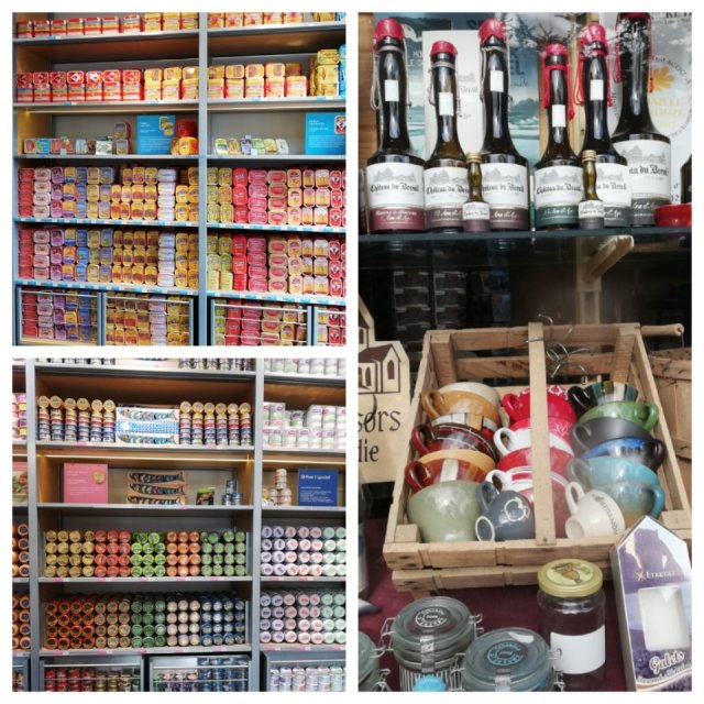 Vi kikade in i en affär som bara hade konserver. Jag tror det bara var sardiner i alla möjliga och omöjliga former och smaker. Kändes lite turistiskt, men säkert en mysig sommarstad.