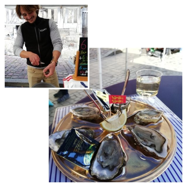 Det var marknad på nån gata, så där passade vi på att köpa dagsfärska ostron.