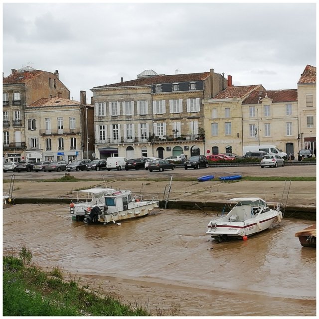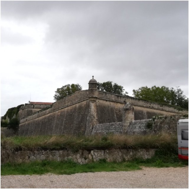 Men ju längre söderut vi kom desto bättre blev det. När vi stannade på ett ställe kring lunch åkte shortsen och T-shirten på! Äntligen! Vi passade också på att handla lite franska godsaker som får följa med på resan. Sedan fortsatt vi genom vindistrikten och neråt Bordeaux. Strax norr om Bordeaux, stannade vi i Blay alldeles vid citadellet. N45.125170, W0.666130 Här kostar det 3 € att stå. Soptunna är den enda fasciliteten. Nära stan och en liten kanal som går in, där båtarna ligger på botten.