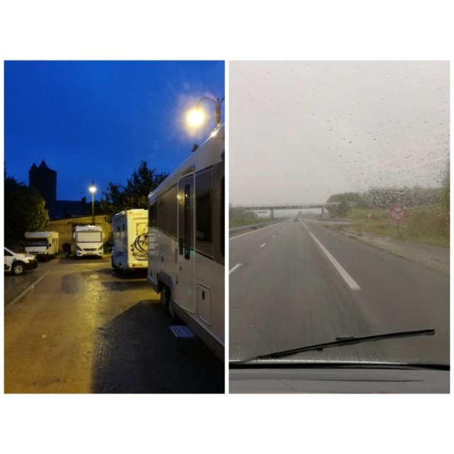 Idag blev det bara en ren transportsträcka. Vi for från Fougères i regn och hade regn utefter vägen.