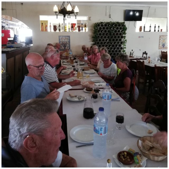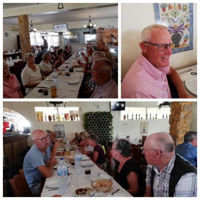 Restaurangen, Pão Quente, såg oansenlig utifrån. Inne var det dukat långbord för oss. Här serveras Cozinha Portuguesa. Portugisiskt kök. Och det är en rejäl gryta, med potatis, kikärtor, långkokt kött, korvar, kål, sötpotatis och säkert nåt mer. Den var otroligt mättande, mustig och god.