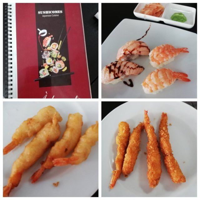 Vi hade fått tips om en japansk restaurang som vi besökte till lunch. Sushi Comes. Här betalar man ett buffé-pris på 11.90 om man vill äta en lunchbuffe. Det ville vi. Sedan får man en bok med alla rätter, en penna och små lappar. Sedan är det bara att börja beställa. Varje rätt har ett nummer/beteckning som man skriver på lappen. Sedan hämtar servitören lappen. Det rekommenderas att beställa 1 rätt i taget, för när det blev lite mera folk i lokalen kunde de inte hålla ordning på beställningarna. Vi fick både det vi beställt och blev utan annat…. Nåja, vi blev otroligt mätta och det mesta var riktigt gott.
