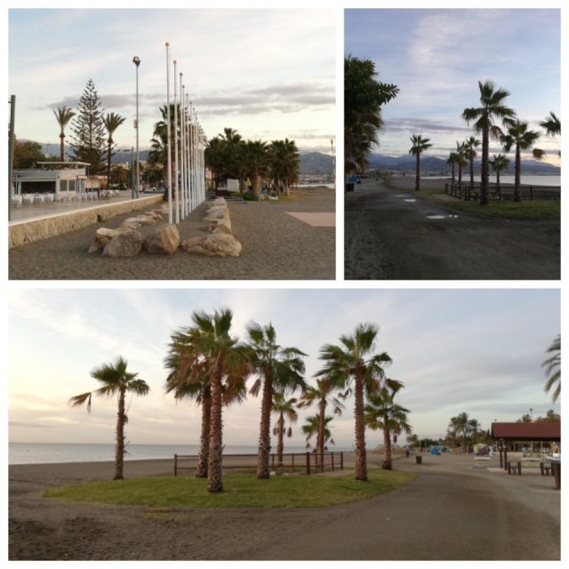 Strandpromenaden här i Torre del Mar är en del av stan som vi tycker väldigt mycket om. Kommunen håller rent och snyggt. Det sopas och krattas. De förnyar och har gjort nya lek-och spelområden för både barn och vuxna. Jag får så mycket härlig energi som räcker hela dagen, när jag tar en morgonpromenad efter stranden. Att se solen stiga upp i horisonten är härligt.
