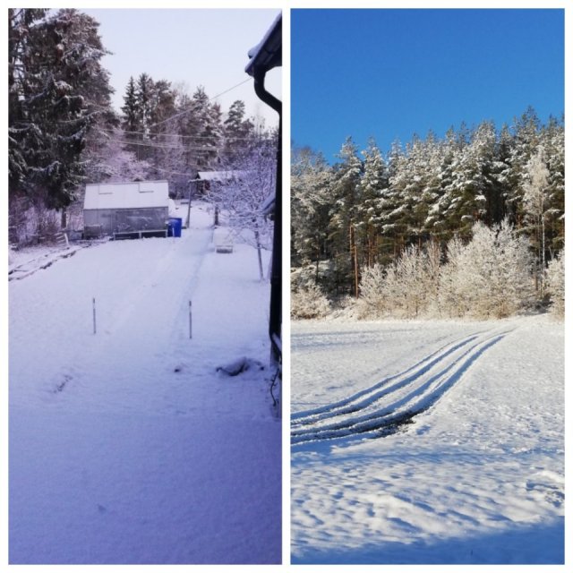 Jag flög från Málaga i värme och solsken och landade i ett kolsvart Sverige. Vädret har bjudit på alla nyanser av grått. Samt en dag strålande solsken. Men det är ju ok för vi har nästan bara varit hemma och kureras.