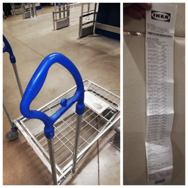 Men kungvagnen blev överfull och kvittot långt som en tapetvåd. Och allt gick in i lilla hyrbilen. Men blev vi klara då? Nix pix. Det bli en ny vända till Ikea direkt efter nyår.