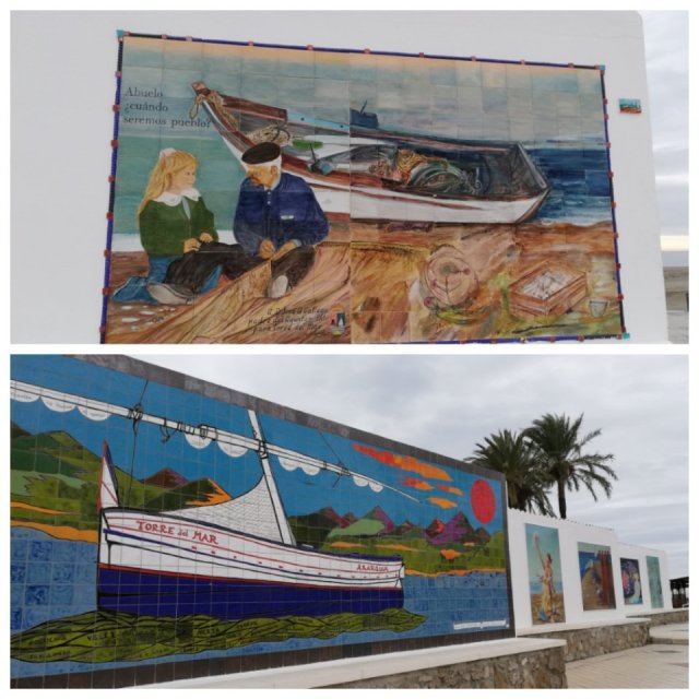 När vi gick från Caleta stannade vi till och fotade målningarna på en vägg. De återspeglar fiskare och livet här i Torre del Mar.