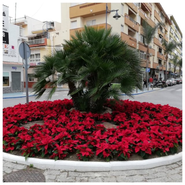 Överallt har man planterat julstjärnor, i rabatter och i rondellerna. Det ser juligt ut. Iallafall en mulen dag. Det piggar liksom upp, när det är mulet.