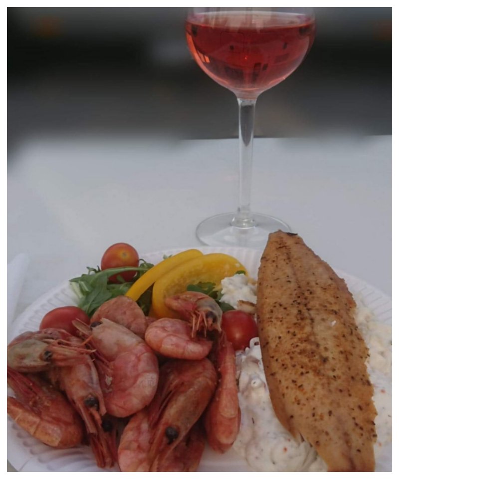 Ställplatsen har inte världens vackraste utsikt precis…. Men det funkar för en natt. Det kostar 150 kr att stå på den gropiga grusplanen, utan el. Med el 200 kr. Det finns en restaurang som verkade ganska välbesökt samt en liten fiskbutik. Vi kunde så klart inte låta bli att köpa lite fisk. Och rökta räkor. Det blev en god middag och en riktigt fin kväll