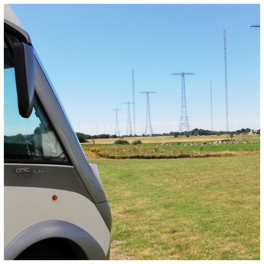 Vi gjorde ett stopp vid Grimeton och hade tänkt att stanna för natten där. Det finns en speciell grusplan för husbilar, gratis och med soptunna. Men det var en massa små små flygfän i luften så vi ”flydde bort till Fegen istället