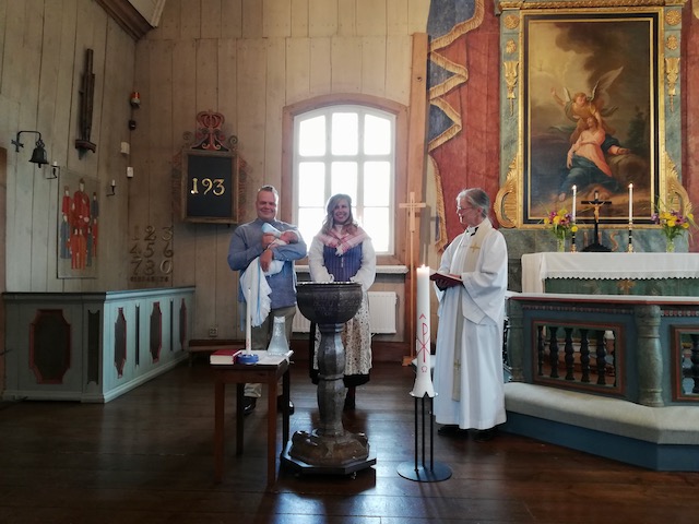 Ja det blev ett litet, men kul att vi kunde ha det innan vi far söderut. Kyrkan är jättefin och dräkten är faktiskt min 😊 Dalarna har ju en ganska stark dräkttradition och det är kul att hon ville ha den 🙂