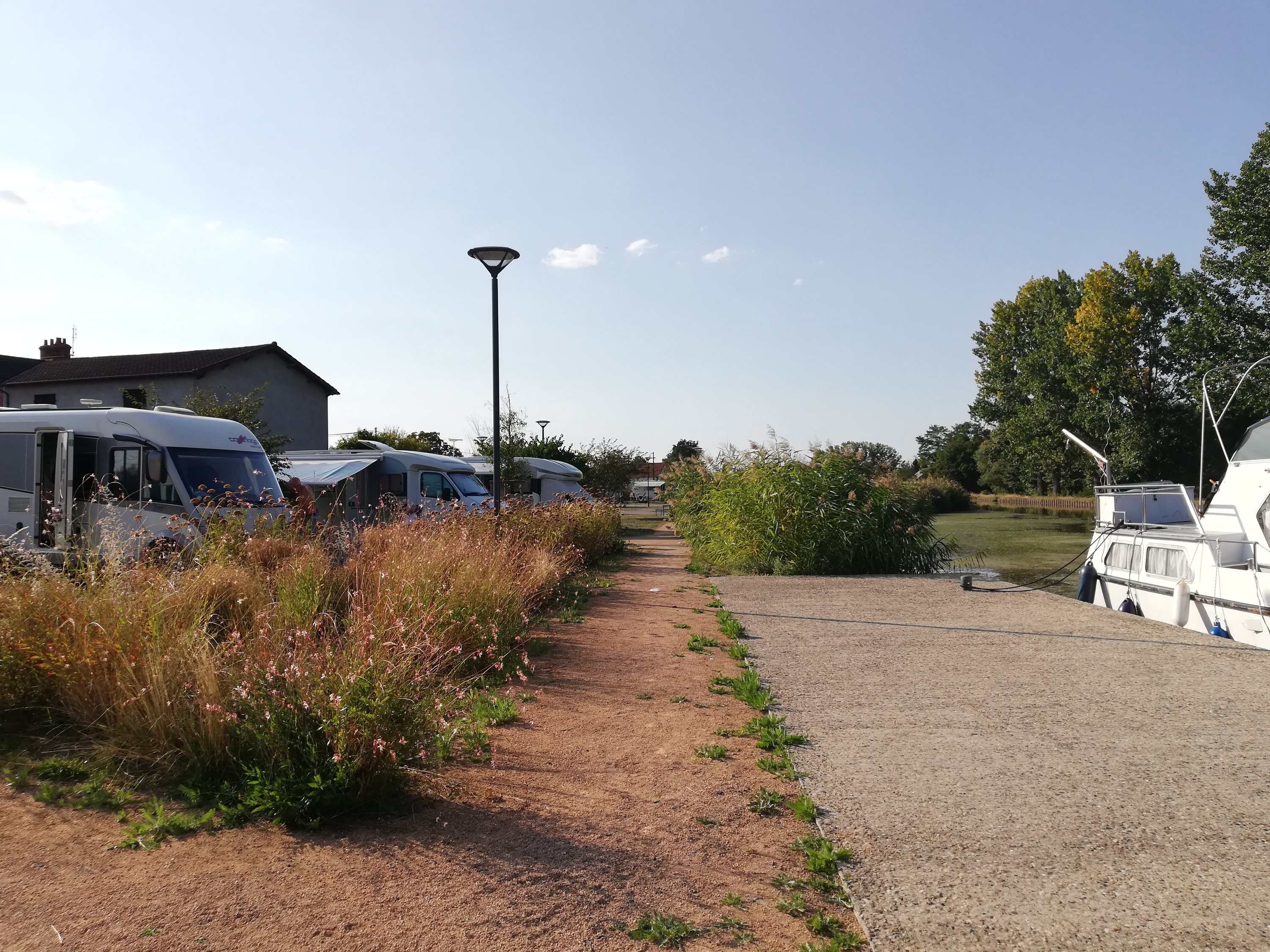 Just nu är vi vid ställplatsen i Molinet några km utanför Digoin. N46.470687, E3.941531 Här är väl avgränsade platser och det finns tillgång till toalett. Platserna ligger precis bredvid Canal Láteral á la Loire. Behöver men service (fyllning och tömning) kostar det 2 €. När vi var på väg hem, våren 2019, stannade vi här. Då hade vi frost. Idag har vi +32….