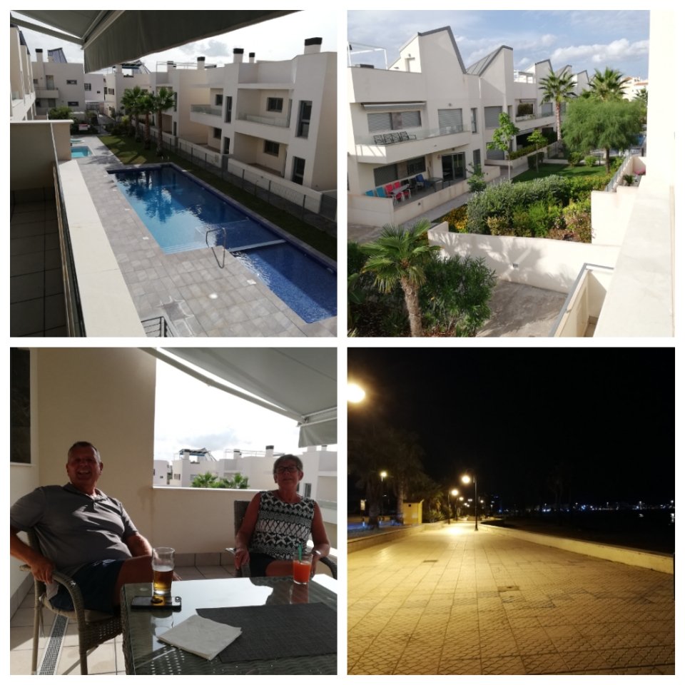 Vi vaknade av en rejäl smäll. Hjälp! Vad var det? Då kom en blixt och ytterliga en smäll. Aha Åskan. Sedan kom regnet. Vi åt frukost i smattret av regn på taket. Och sedan körde vi mot Torrevieja. Där har vänner köpt en alldeles nybyggd fin lägenhet. Kul att se hur de fått det. Och kul att utbyta lite erfarenhet och tankar om att köpa en egendom i Spanien. Vi hade en trevlig kväll med god mat och prat, prat och prat 👍