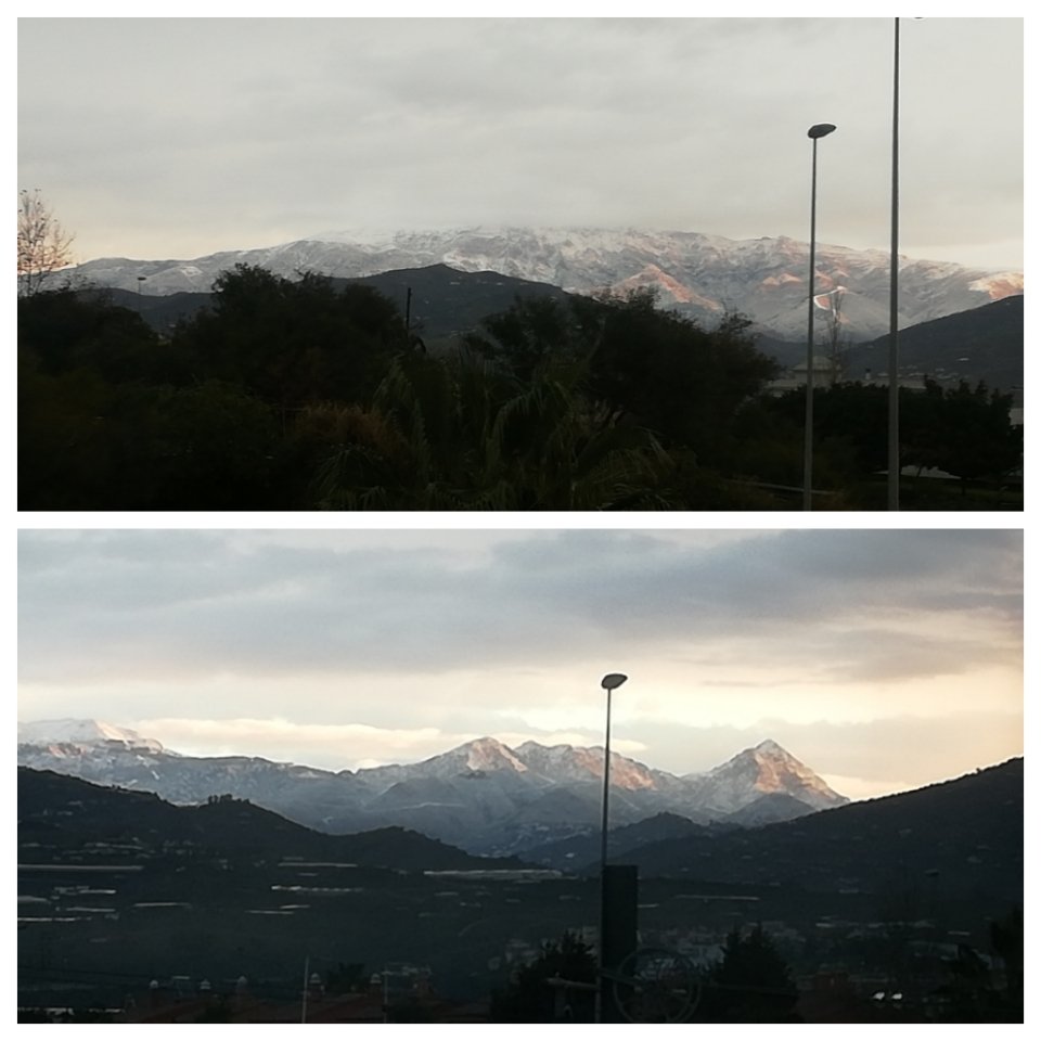 Sedan kom kylan. Vi hade inte så många plusgrader på morgonen och bergstopparna runtomkring oss var täckta av snö och frost. Det kom även en hagelskur här i stan så det var vitt på gatorna en tidig morgon :O Nordliga vindar och vi var inne i princip en hel vecka. Detta var nog den absolut kallaste veckan vi upplevt under våra tre vintrar härnere. Det blev så kallt, så jag stickade mej ett par handledsvärmare. Och rapporterna berättade om en halv meter snö i Madrid!